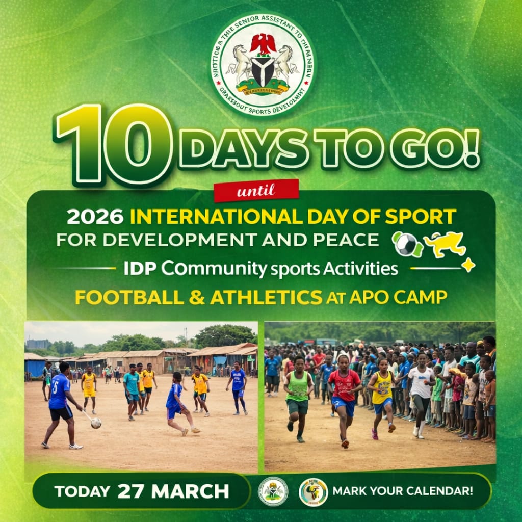 With 10 days to go to the 2026 International Day of Sport for Development and Peace, the Office of the Senior Special Assistant to the President on Grassroots Sports Development is spotlighting the Community Sports and IDP Camp Outreach as a key pillar of this year’s celebration.