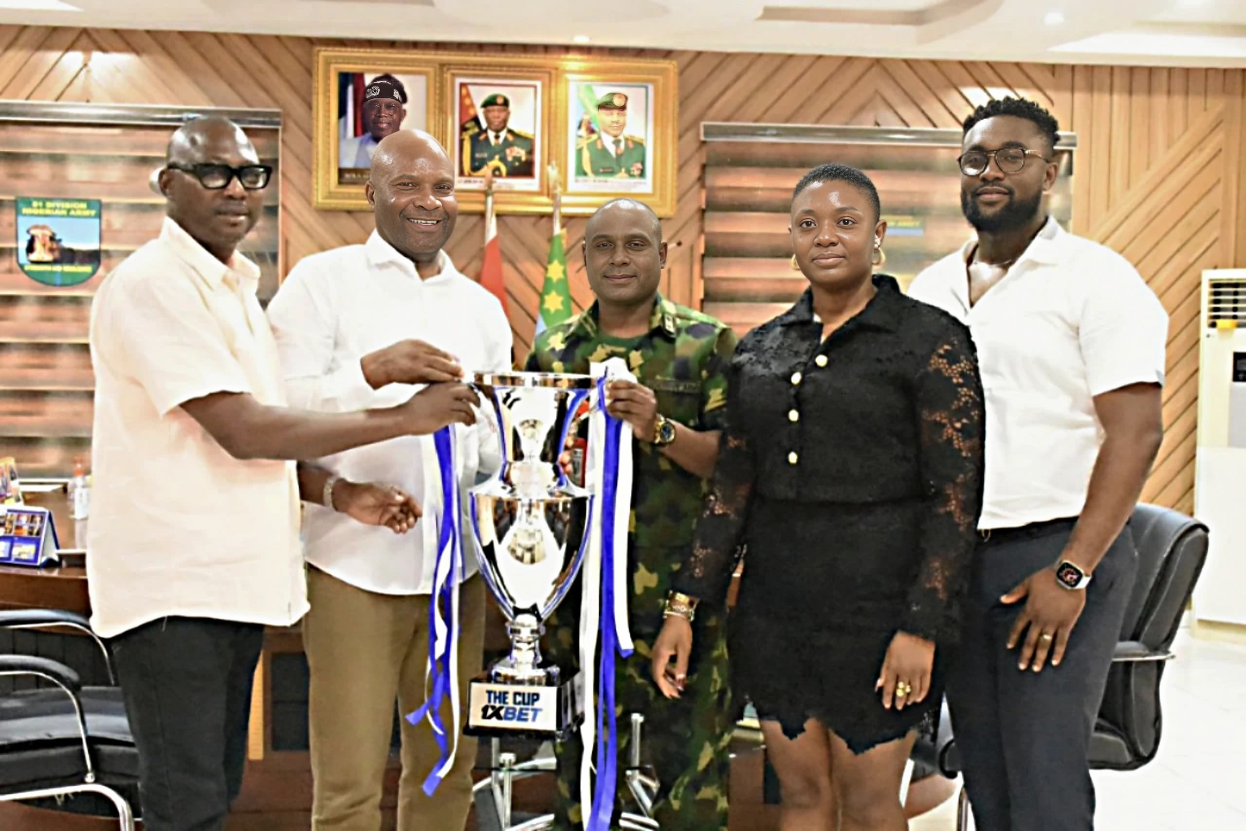 The 1XBET team similarly paid a courtesy call on the 9th Brigade Commander at Ikeja Cantonment, Brigadier General Olawale Mathew Oyekola to also brief him about the tournament.