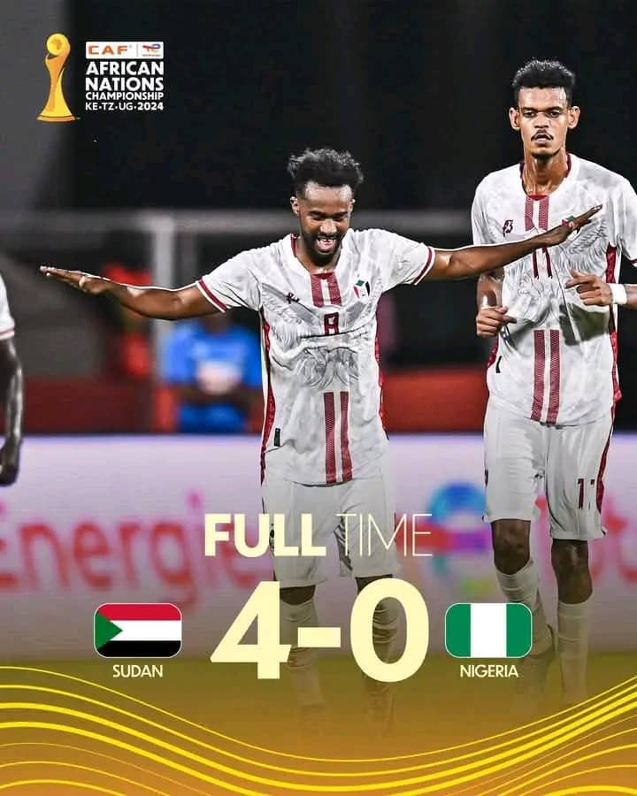 Nigeria crashed out of the 8th African Nations Championship on Tuesday after an abject performance by a team that failed to put any foot right against Sudan in 90 minutes of football in Zanzibar