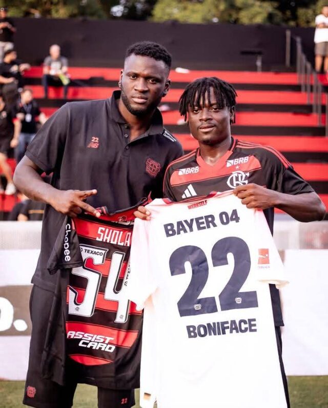 Rising Nigerian talent Shola Ogundana, who plays for Flamengo U20, shared a heartfelt moment with fellow countryman Victor Boniface after a recent post-match interaction that highlighted the growing brotherhood among Nigerian stars abroad.