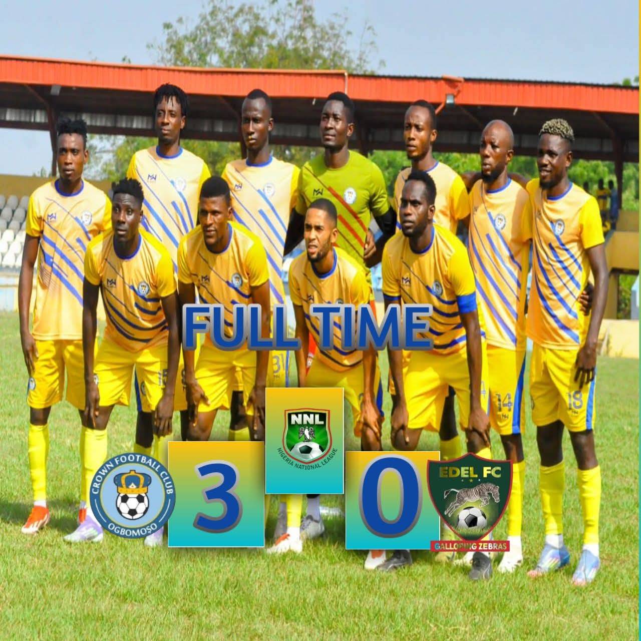 Crown FC delivered a commanding performance to secure a convincing 3–0 victory over Edel FC in their Nigeria National League Matchday 6 encounter at the Soun Stadium, Ogbomoso.