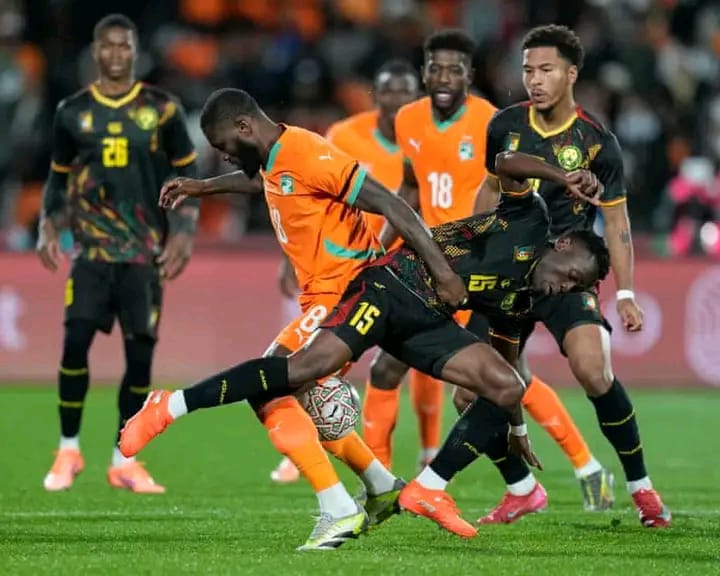 The Elephants dominated possession and territory in the early stages, forcing corners and pinning Cameroon back, but the Indomitable Lions remained dangerous on the counterattack.