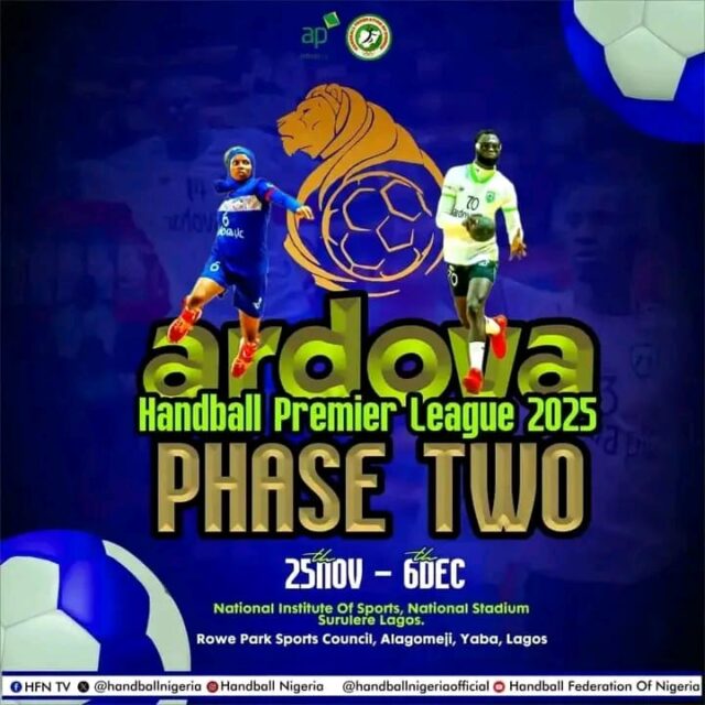 The Ardova Handball Premier League 2025 resumes in Lagos on Tuesday with Phase 2 action expected to reshape both the men’s and women’s title races, as leading contenders brace for crucial Matchday 1 battles at Rowe Park, Yaba.