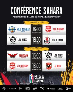 Eight teams from across the two conferences will qualify for the Playoffs in Kigali. Tickets for the Sahara Conference group phase in Rabat and the Playoffs and Finals will be available soon. Fans can register their interest in tickets at BAL.NBA.com. Fans who purchase tickets will also have free access to the BAL Fan Zone at each arena.