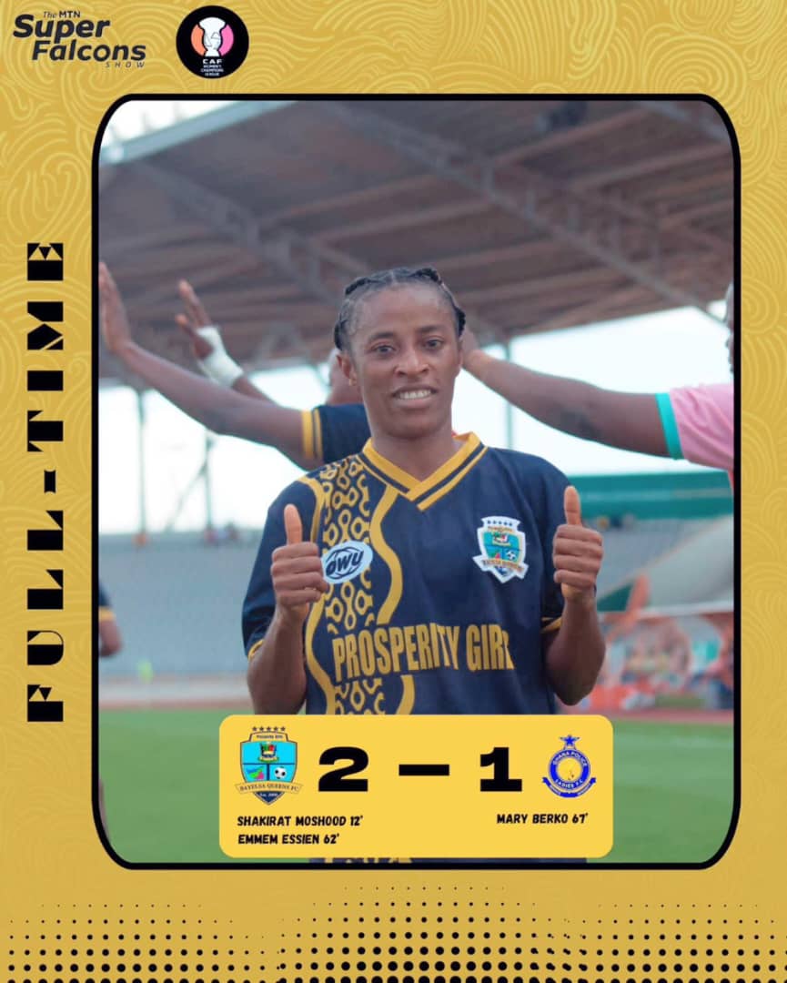 The Nigerian champions took an early lead in the 12th minute through Shakirat Moshood, before Emem Essien doubled the advantage in the 62nd minute.