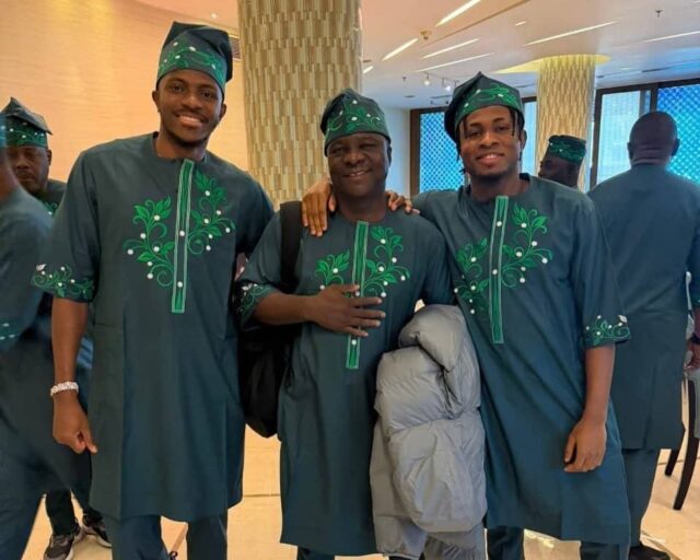 “The Super Eagles arrived in deep green traditional ensembles, reflecting the national colour and Nigeria’s cultural influence across the continent.