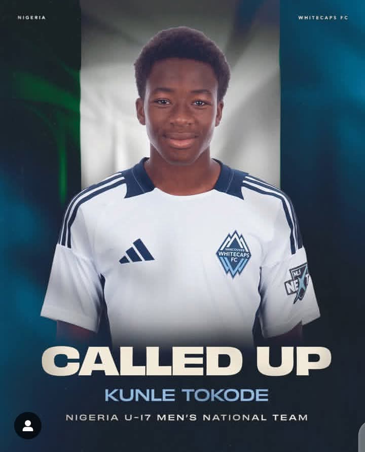 Kunle Tokode, a promising winger currently playing for the Vancouver Whitecaps FC BMO Academy in Canada, has been officially invited to join Nigeria’s U-17 national team camp.