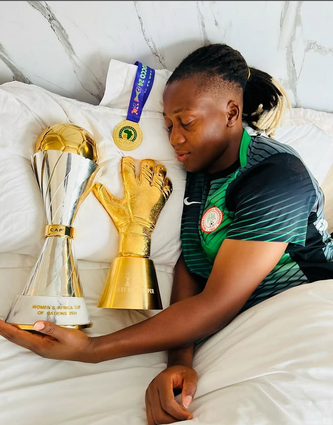 Along the way, Nnadozie has picked up many laurels and accolades, among which are youngest keeper with a clean sheet in a Women’s World Cup match (2019), Africa Games gold medal (2019), team captain in a World Cup match (2023), two WAFCON gold medals (2018 and 2025), African Women’s Goalkeeper of The Year (2023 and 2024), as well as WAFCON best goalkeeper (2025).