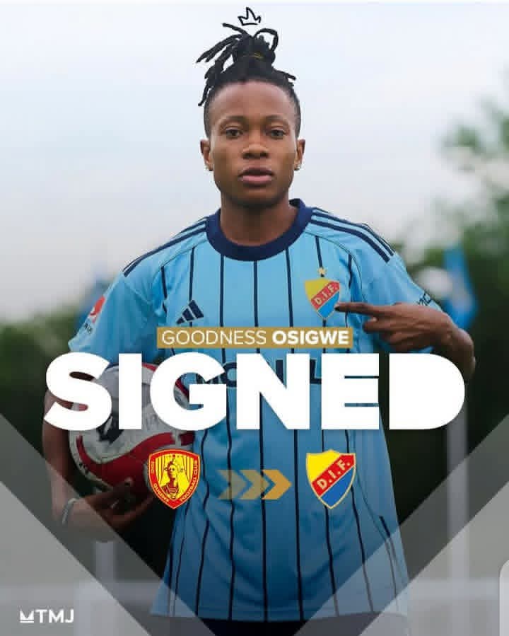 Osigwe, who previously shone in the Nigerian Women’s Football League (NWFL), is expected to bring energy, creativity, and drive to Djurgården as the club continues to strengthen its squad for the coming season.