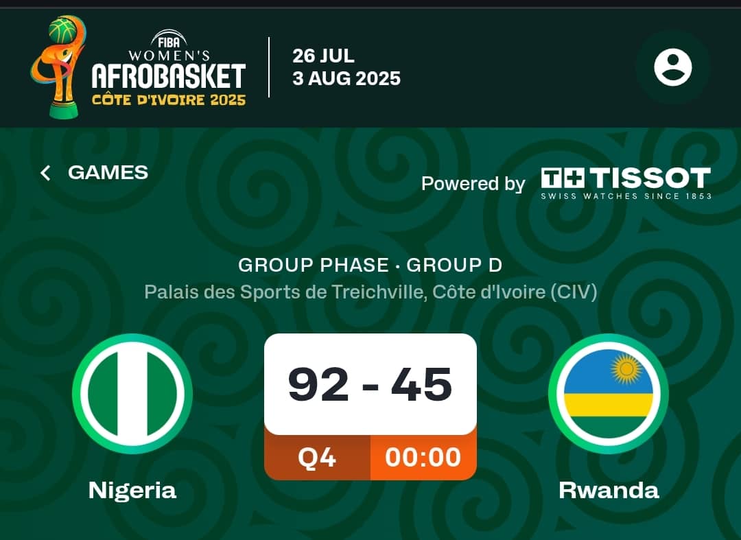 The game’s largest lead stood at 47 points, with Nigeria putting together a 15-0 scoring run and maintaining the lead for more than 38 minutes. Rwanda, which managed only brief moments of resistance, failed to mount any serious challenge after the first quarter.