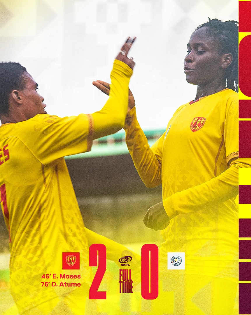 Edo Queens delivered a commanding performance to secure a 2–0 victory over Adamawa Queens in their NWFL Matchday 4 encounter at the Samuel Ogbemudia Stadium, bringing an end to the visitors’ unbeaten start to the season.