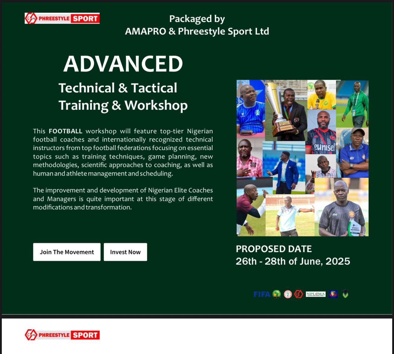 The highly anticipated event, organized in collaboration with the Africa Development Program and AMAPRO, will take place at the Remo Stars Sports Institute in Ikenne, Ogun State, from Thursday, June 26 to Saturday, June 28, 2025.