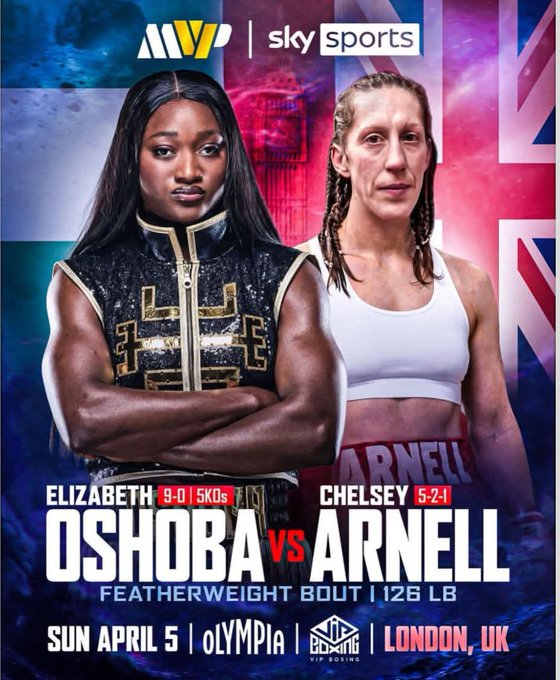 The International Boxing Federation (IBF) No.1 contender will face Arnell over six three-minute rounds, the same duration used in men’s boxing — a format Oshoba says she has fully prepared for.