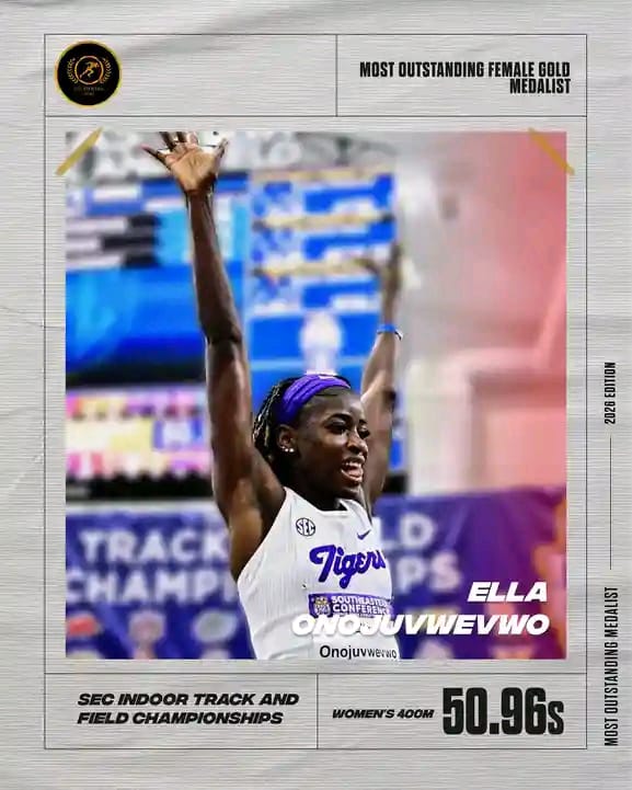 The SEC Indoor Championships remain one of the most competitive conferences in NCAA athletics, often featuring athletes who progress to global stages. By clinching gold in such a stacked field, Onojuvwevwo further cemented her status as one of Nigeria’s brightest emerging sprint talents.