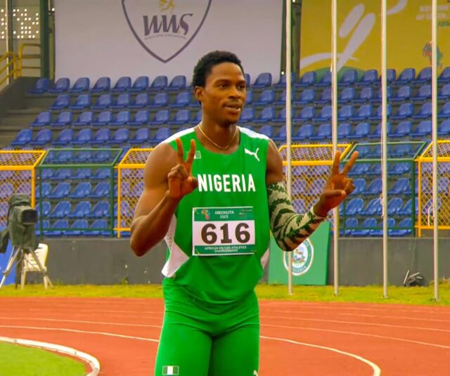 The 18-year-old athlete from Nigeria exploded out of the blocks at the MKO Abiola International Stadium, outrunning Algeria’s Ghettas Walid Fares, who came in second, and South Africa’s Dirk Coetzee, who placed third.