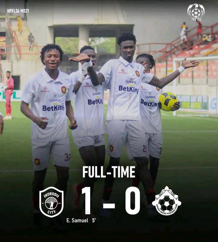 Ikorodu City edged Kwara United 1–0 in their Nigeria Premier Football League Matchday 21 clash at the Mobolaji Johnson Arena, Lagos, thanks to an early goal from Samuel Ezekiel.