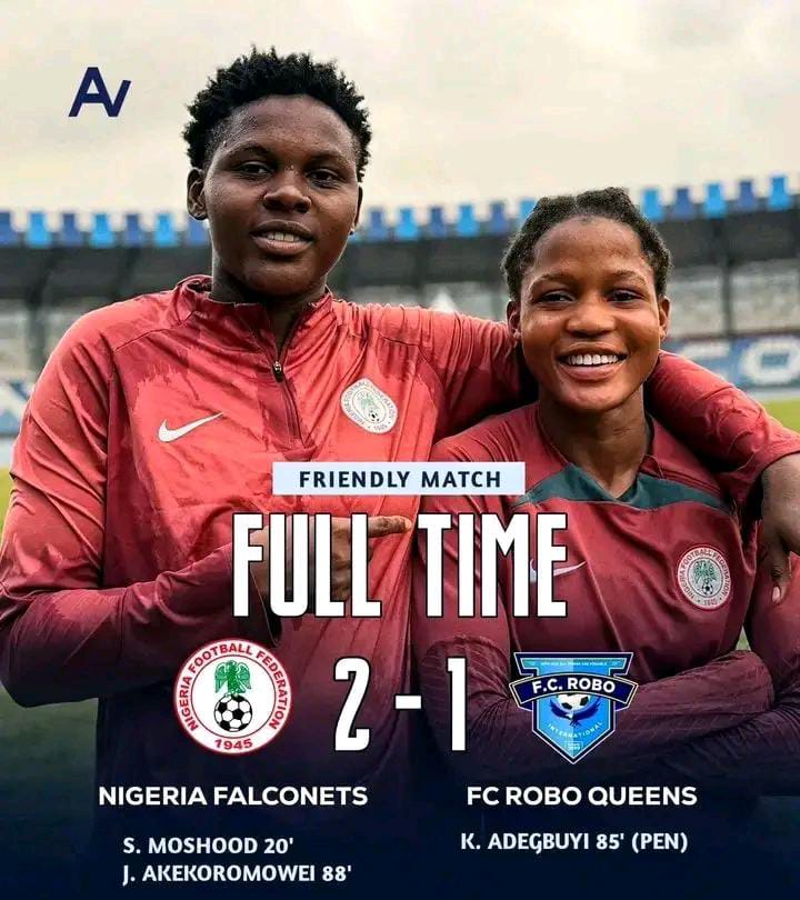 Nigeria’s U-20 women’s national team, the Falconets, continued their build-up to the FIFA U-20 Women’s World Cup qualifiers with a hard-fought 2–1 victory over FC Robo Queens in a friendly encounter.