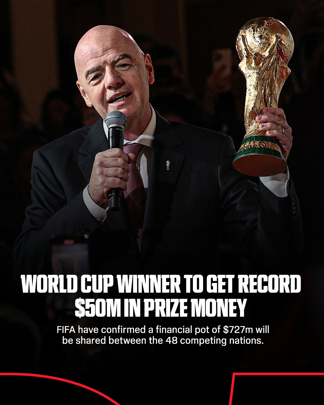 The unprecedented contribution will be distributed among the 48 Participating Member Associations (PMAs) set to compete at the expanded World Cup, which will be jointly hosted by the United States, Canada and Mexico.