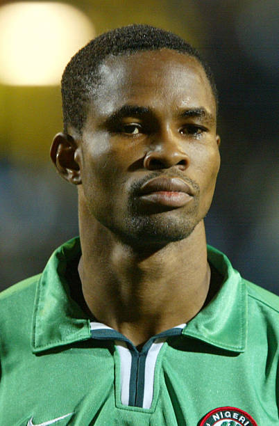 LONDON, UNITED KINGDOM: Portrait of Nigerian national soccer team defender Eric Ejiofor, taken 26 March 2002 at Loftus Road stadium in London before the start of the friendly soccer match against Paraguay. Both teams will participate in the 2002 FIFA World Cup taking place in South Korea and Japan from 31 May to 30 June. AFP PHOTO / Odd ANDERSEN (Photo credit should read Odd Andersen/AFP via Getty Images)