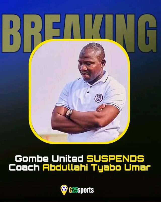 Gombe United have suspended their Technical Adviser, Abdullahi Tyabo Umar, indefinitely following the club’s underwhelming start to the 2025/26 Nigeria National League (NNL) season.