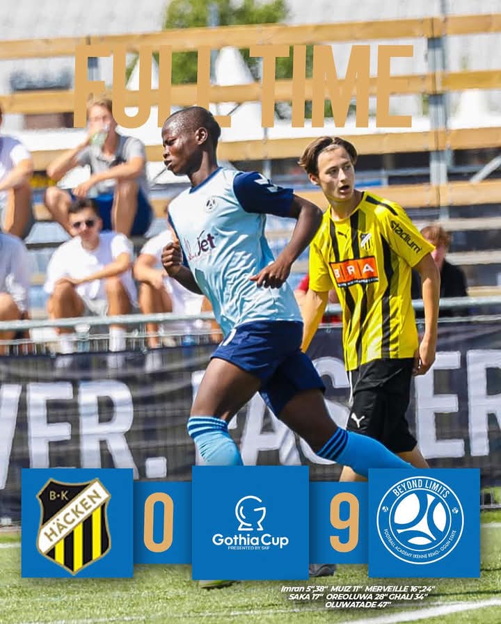 Beyond Limits Football Academy began their Gothia Cup 2025 campaign in emphatic fashion, thrashing Swedish side BK Häcken 9–0 in their Group Stage opener on Monday.