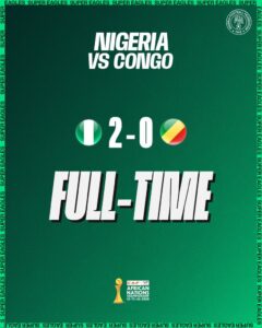 Sports247 reports that the CHAN Eagles spoilt Congo’s hope of qualifying for the quarter-finals with 2-0 victory on Tuesday in Dar-es-Salaam, Tanzania; and the Nigerians were able to finish third on the table in Group D with three points, while their opponents were stuck on two.