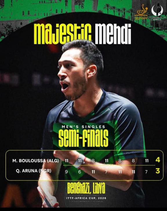 Medhi Bouloussa delivered one of the biggest shocks of the 2026 ITTF-Africa Cup in Benghazi, Libya, after knocking out four-time champion Quadri Aruna of Nigeria to secure a place in his first-ever continental final.