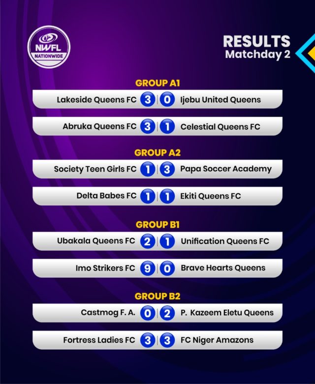 The four top teams at the end of today’s last group games will play in the final round of the NWFL Nationwide league on April 27, to pick the teams that will be promoted to the NWFL Championship, the professional cadre of the NWFL League.