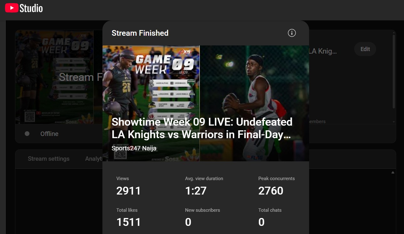 The Showtime Bowl Series XIII delivered another explosive round of action on Sunday, but while the scoreboards lit up across all five matchups, the standings remained unchanged — and so did the dominance of the Lagos Athletic Knights, who officially clinched the ₦2 million Regular-Season Championship Prize along with the prestigious new trophy inspired by the EPL Community Shield.