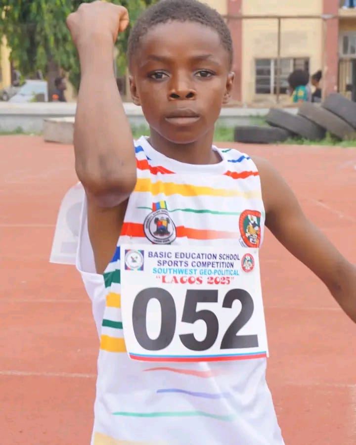 The young sprinter, representing his school with pride, powered past a competitive field to secure victory on home soil, much to the delight of spectators at the event held in Lagos.