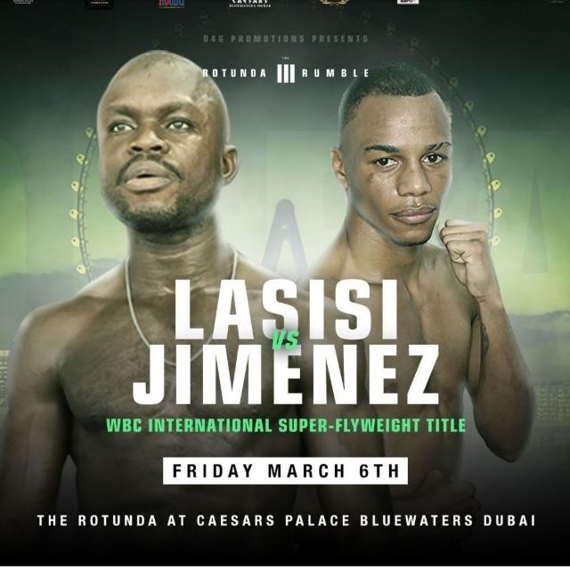 Nigerian boxer and WBC International Super-Flyweight Title holder, Aliu Bamidele Lasisi has vowed to Knockout Norbelto Jimenez, when both amazing boxers clash at the Caesars Palace Bluewaters in Dubai on Match 6th (Friday) for the WBC International Super-Flyweight Championship.