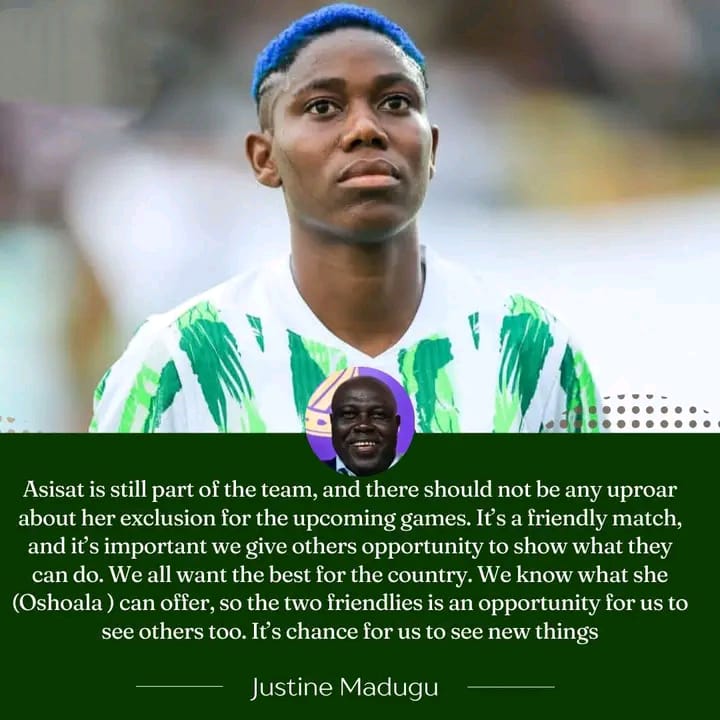 “Asisat is still part of the team, and there should not be any uproar about her exclusion for the upcoming games,” Madugu stated. “It’s a friendly match, and we must allow others to show what they can do.”