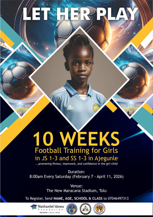 Unveiled in Ajegunle, Lagos, the 10-week programme is targeted at girls under the age of 14 and will run from February 3 to April 11, 2026, at the iconic New Maracana Stadium, Tolu.