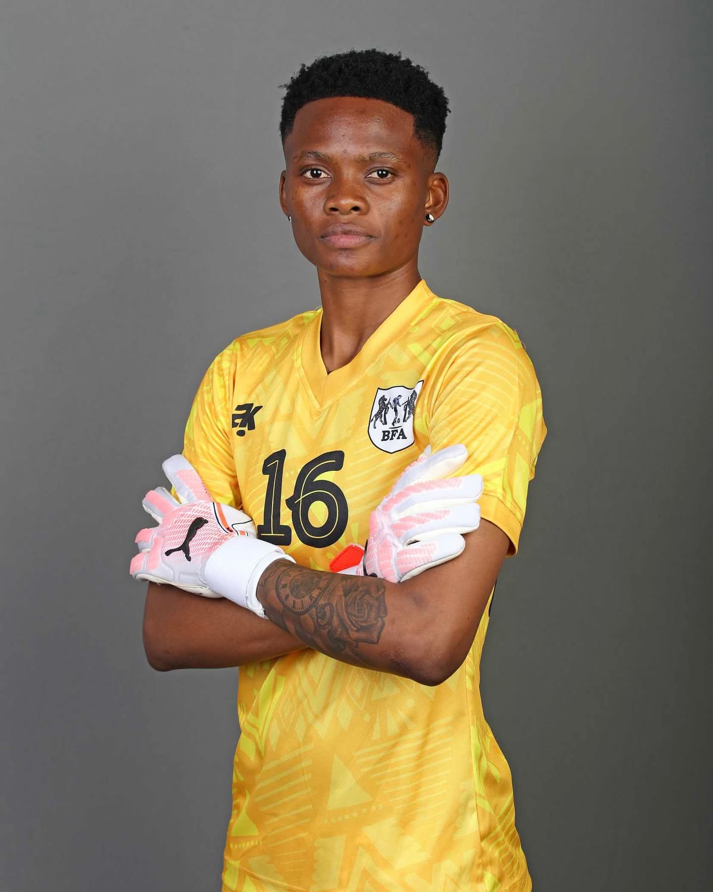 Born and raised in Botswana, Boseja started as a striker before finding her true calling between the posts. Today, she is not only the first-choice goalkeeper for Botswana’s national team, The Mares, but also the team’s captain and emotional anchor.