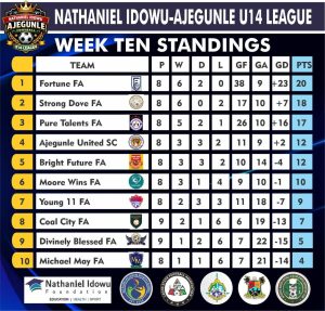 Ajegunle United Sporting Club continued their impressive surge in the Nathaniel Idowu-Ajegunle Under-14 Football League.
