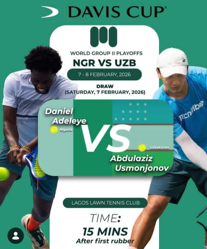 Nigeria will host the Davis Cup World Group II playoffs from Feb. 7–8, 2026, at the Lagos Lawn Tennis Club, with the nation set to face Uzbekistan in a crucial tie.