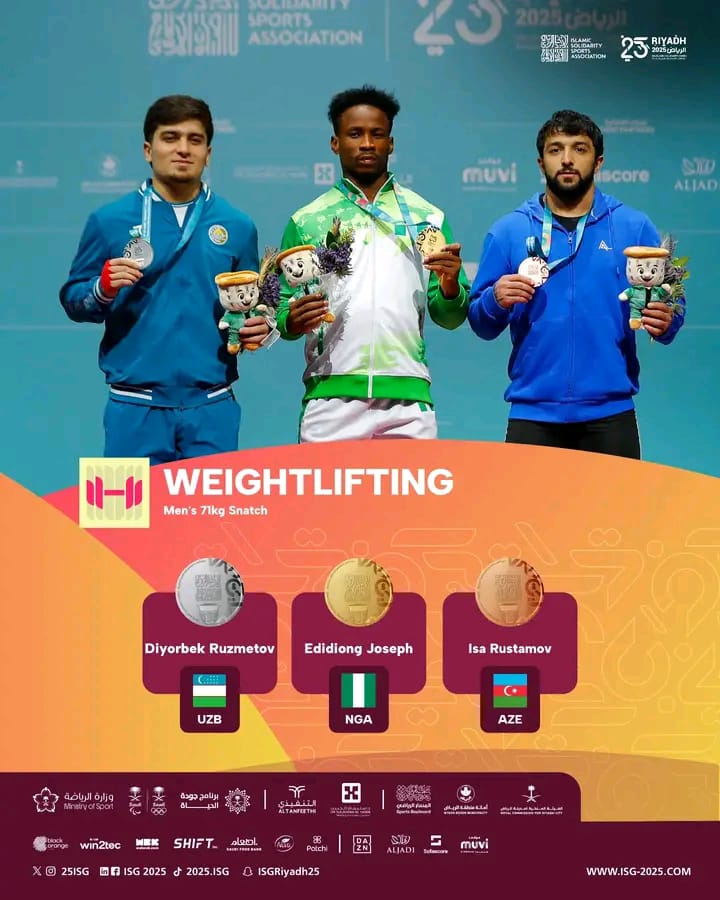 Nigeria’s Edidiong Joseph proved his class on the international stage, clinching a remarkable three medals — gold, silver, and bronze — at the ongoing Islamic Solidarity Games in Riyadh, Saudi Arabia.