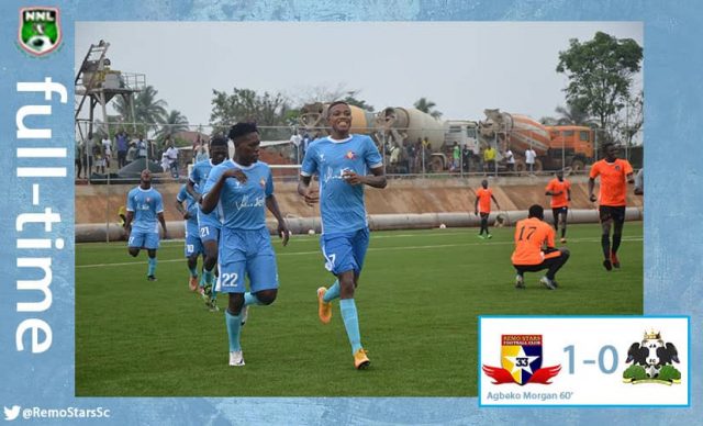 Agbeko Morgan had a hat-trick of chances before tapping Remo Stars FC to a 1-0 home win over J. Atete FC to maintain their top spot on the NNL Group B2 table.