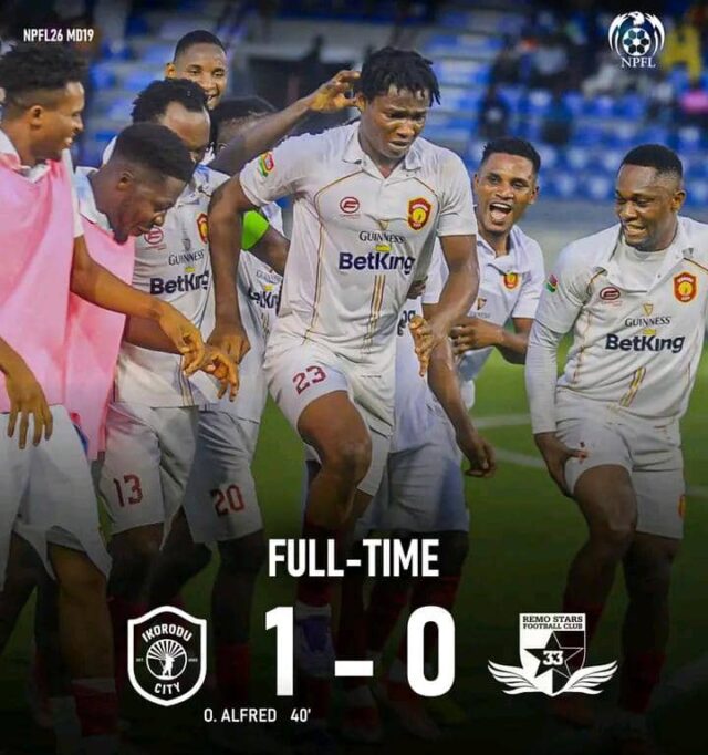 Ikorodu City FC claimed a famous 1–0 victory over defending champions Remo Stars in their Matchday 19 Nigeria Professional Football League encounter.