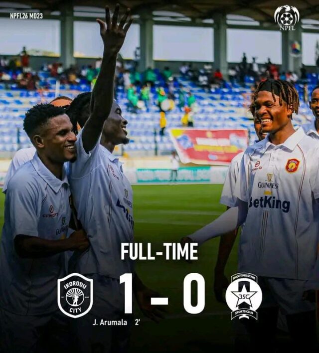 Ikorodu City continued their impressive run in the South-West derby, edging Shooting Stars SC 1–0 thanks to an early strike from Joseph Arumala that set the tone for a fiercely contested encounter.