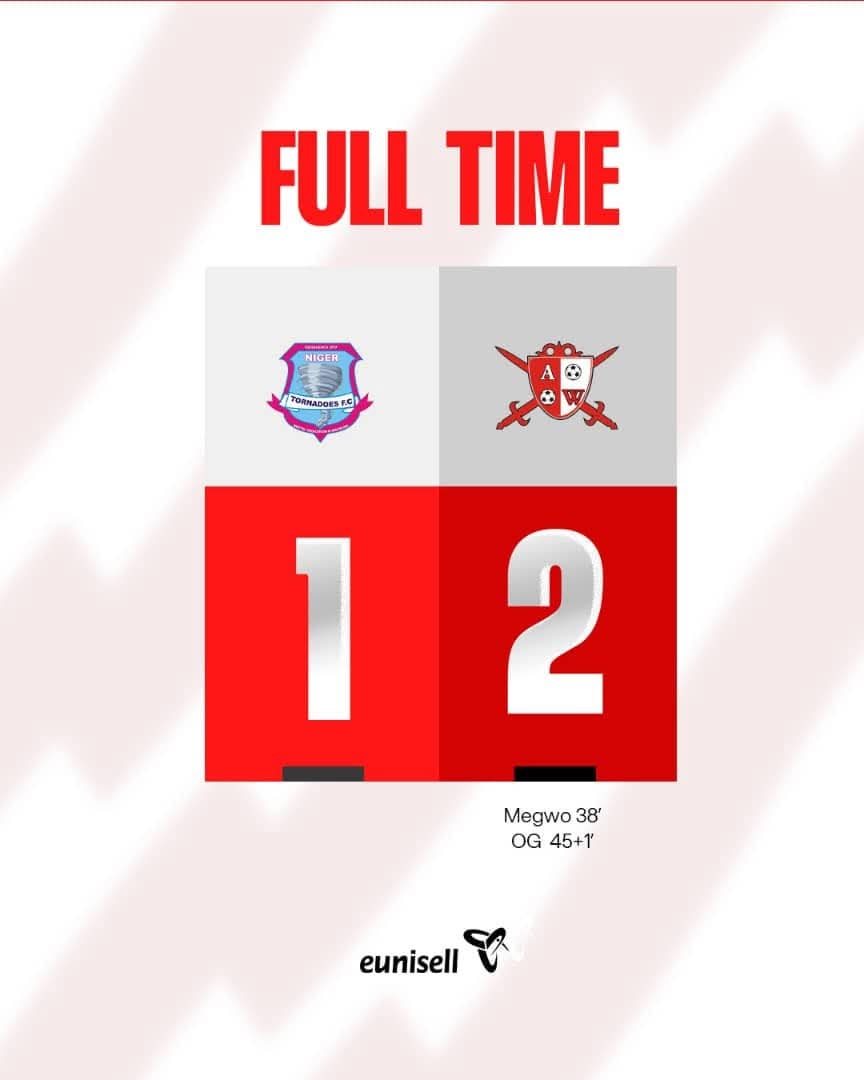 Abia Warriors continued their impressive form to climb to the top of the Nigeria Premier Football League (NPFL) table after a 2-1 away victory over Niger Tornadoes in Minna.
