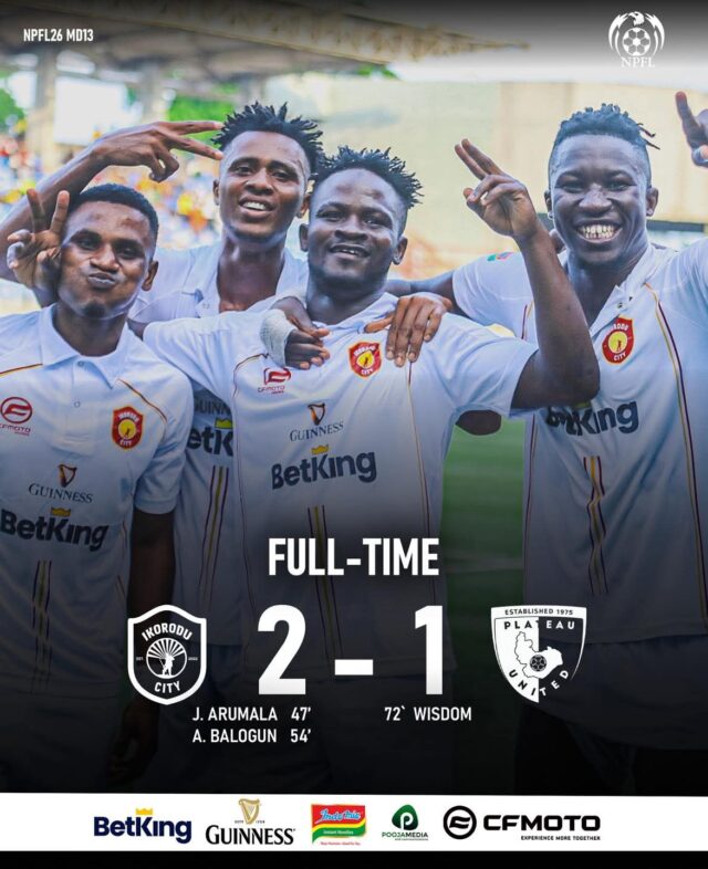 At the top of the table, Ikorodu City continued their fairy-tale run with a 2–1 victory over 15th-placed Plateau United.
