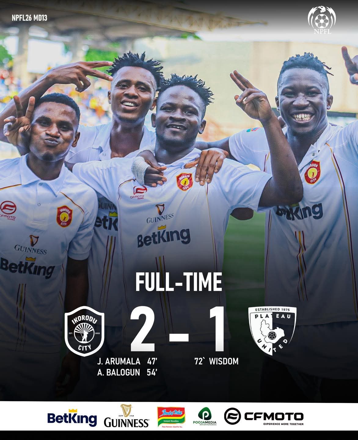 ⚽ Arumala 47’, Balogun 53’ (IKD); Ndon 72’ (PLA)