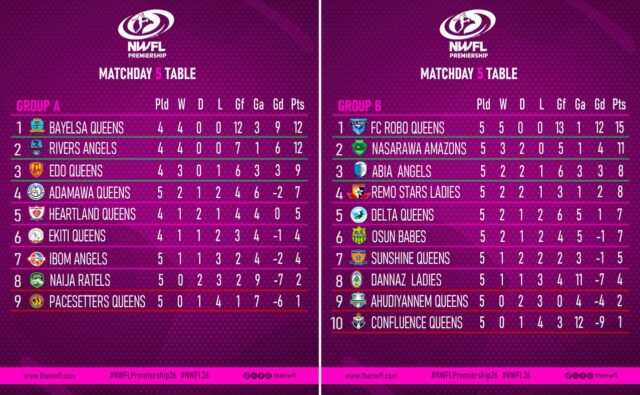 The Nigeria Women Football League (NWFL) Premiership continued to deliver thrilling action as Matchday 5 fixtures further shaped the race for Super Six qualification in the 2025/2026 season.