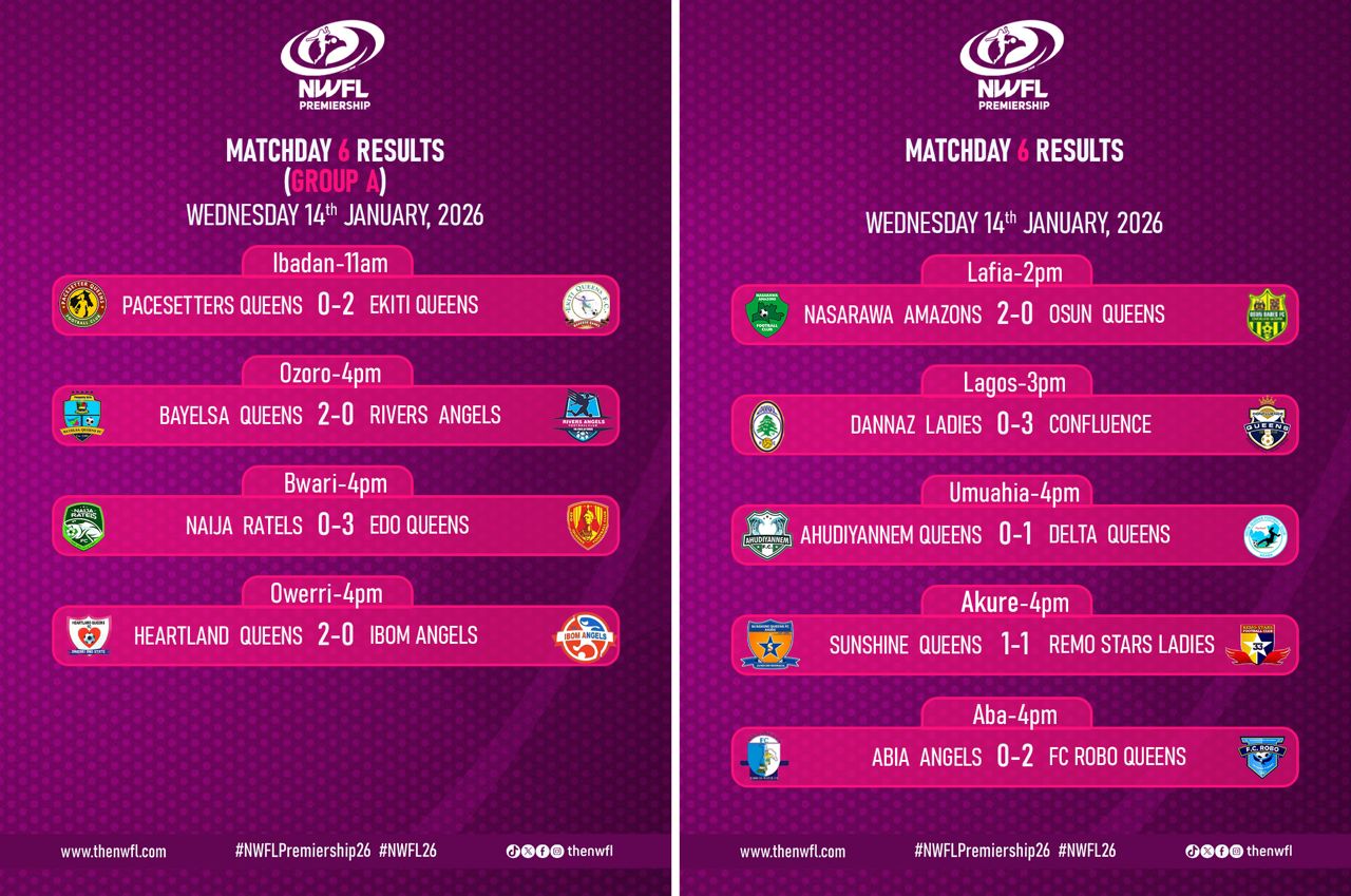 Matchday 6 of the Nigeria Women Football League (NWFL) Premiership delivered a compelling narrative, with away teams stealing the spotlight across the country. Five clubs recorded emphatic victories on the road, underlining the growing competitiveness and tactical maturity within the league.