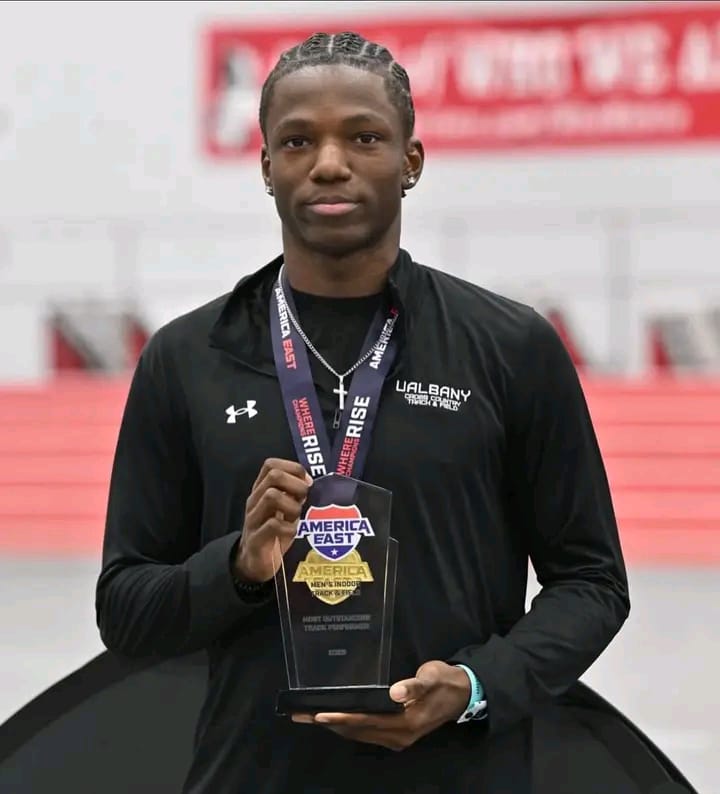 Tooni Ogunyeye delivered a statement performance at the 2026 America East Indoor Championships, successfully defending his men’s 60m title and sealing a dominant sprint double for UAlbany Great Danes.