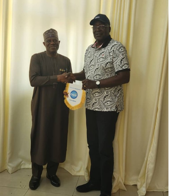 The President of the Handball Federation of Nigeria (HFN), Mr. Jibril Saidu Ojih (FNIQS), paid a working visit to the President of the Confederation of Africa Handball (CAHB), Dr. Mansourou Aremou in Cotonou, Benin Republic on Tuesday, where key developmental discussions about the growth of handball in Nigeria took center stage.