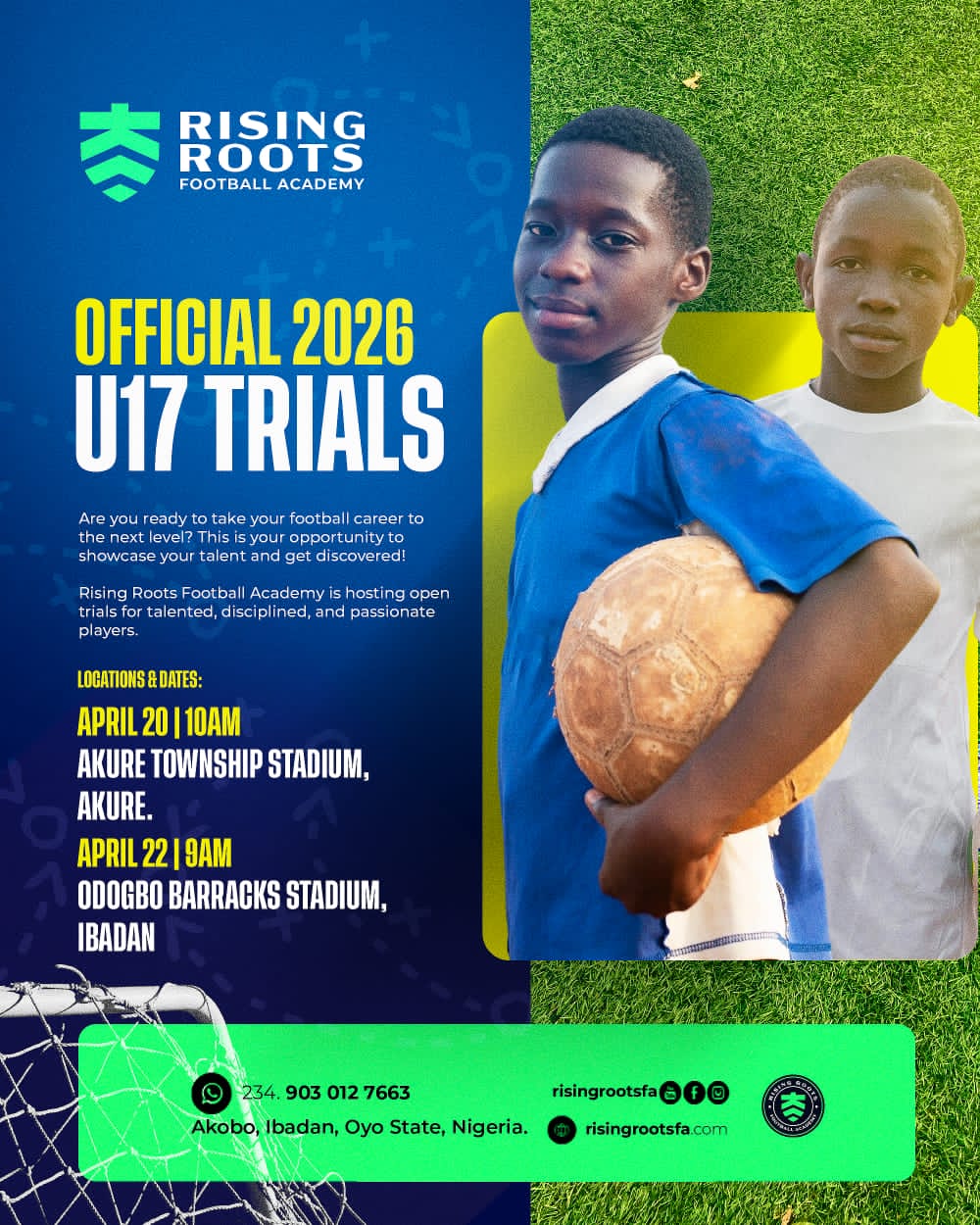 Alongside the staff recruitment, Rising Roots has officially announced its 2026 U17 Open Trials, as the academy begins its search for the next generation of Nigerian football stars.