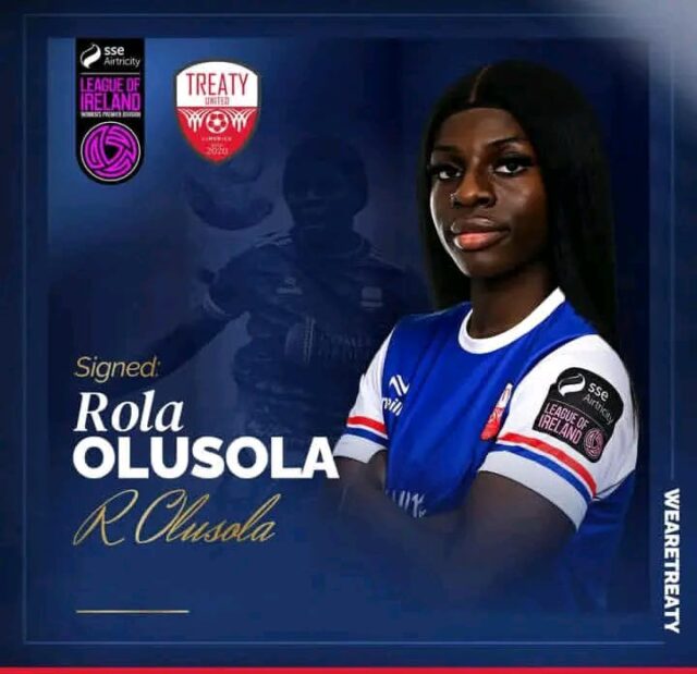 Nigerian-heritage forward Rola Olusola has taken the next step in her career after completing a move to Treaty United Women, who compete in the League of Ireland Women’s Premier Division, the top tier of women’s football in Ireland.