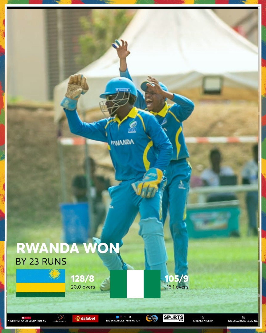 Rwanda national cricket team secured a convincing 23-run victory over Nigeria Yellow-Greens in Match 11 of the ongoing regional tournament held at the NCF Oval 1 on Tuesday. The defeat adds pressure on Nigeria’s campaign as teams jostle for top spots.